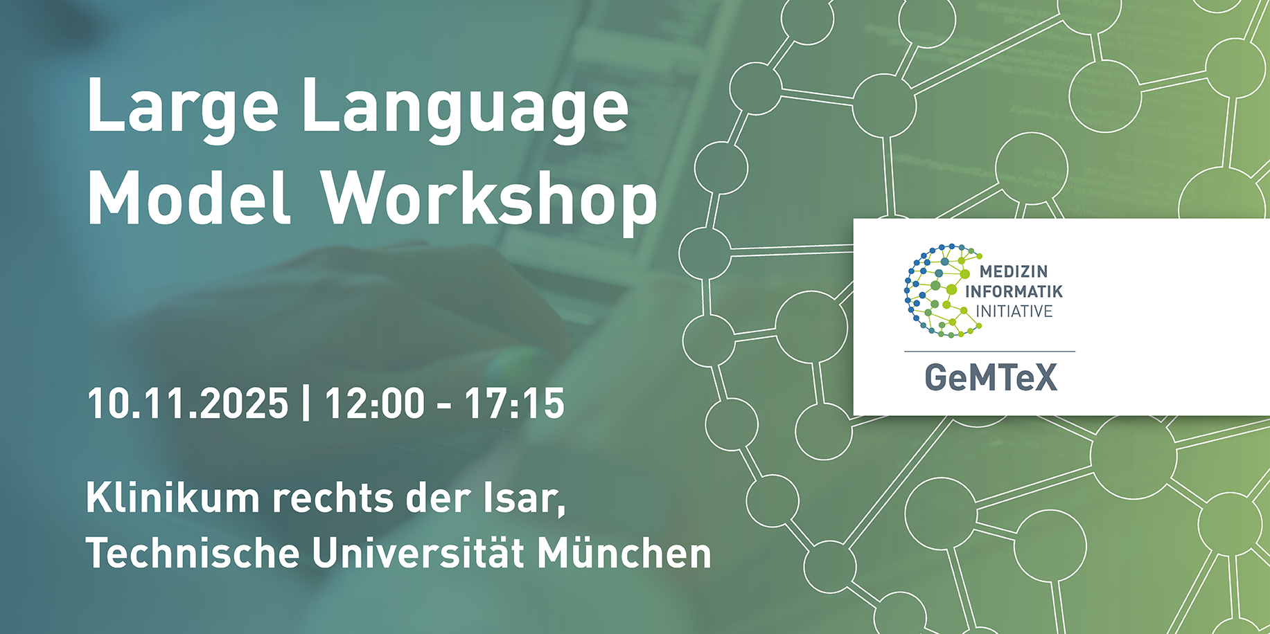Das GeMTeX-Projektteam lädt am 10. November 2025 zu einem Workshop rund um Large Language Models (LLMs) in den Großen Hörsaal des Klinikums rechts der Isar/TU München ein.